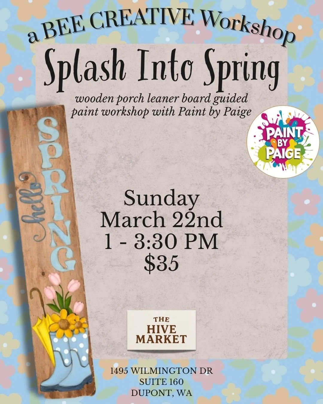 In this beginner-friendly class, you’ll paint a tall wooden sign featuring colorful rain boots filled with fresh spring flowers. Paige from Paint by Paige will guide you step by step, making it easy and enjoyable—no experience needed.